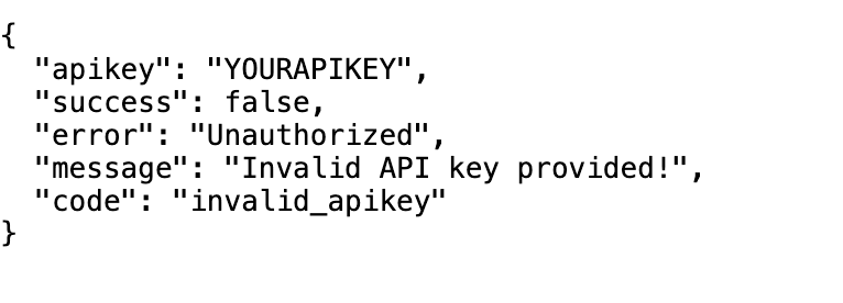 Fig. 2: JSON response of unsuccessful query due to invalid API key