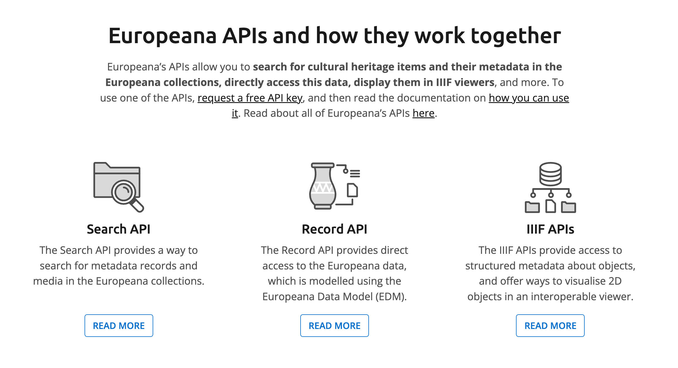 Fig. 1: Screenshot of the Europeana APIs landing page (https://apis.europeana.eu/en)